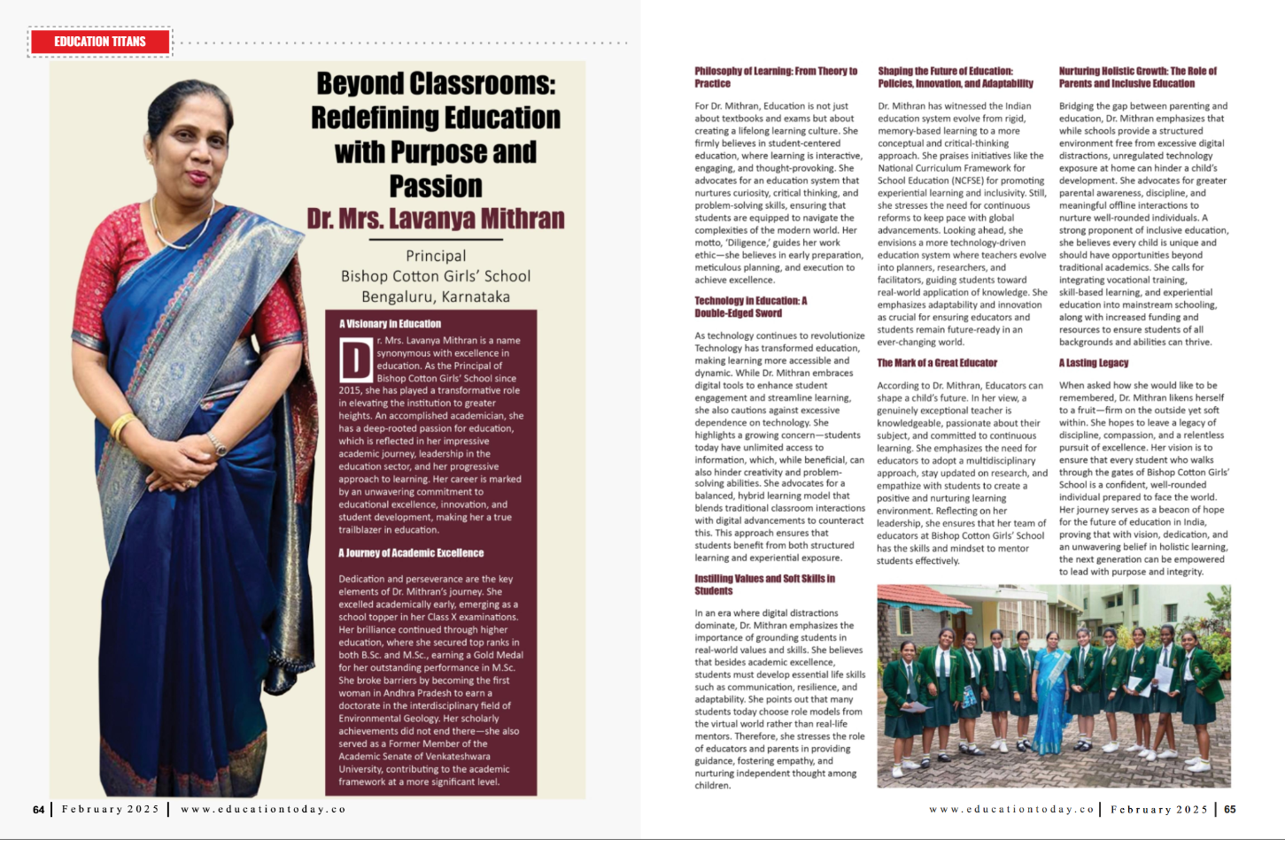 We are proud to share that Dr. Mrs. Lavanya Mithran has been featured in the Honor Roll of Education Titans in Education Today’s February 2025 issue.